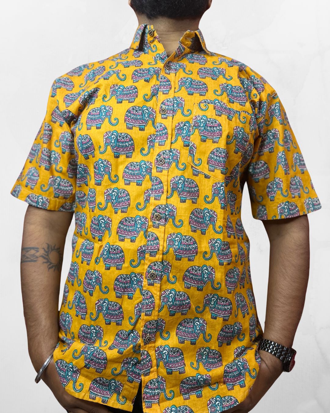 Half Sleeves Shirt | Elephant Print | Sanganeri Design