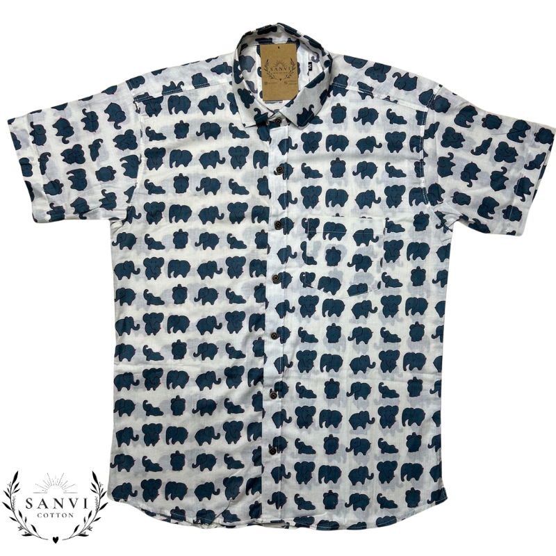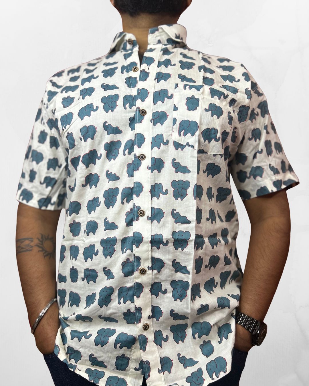 Be the first to review “Half Sleeves Shirt | Elephant Print | White Colour”
